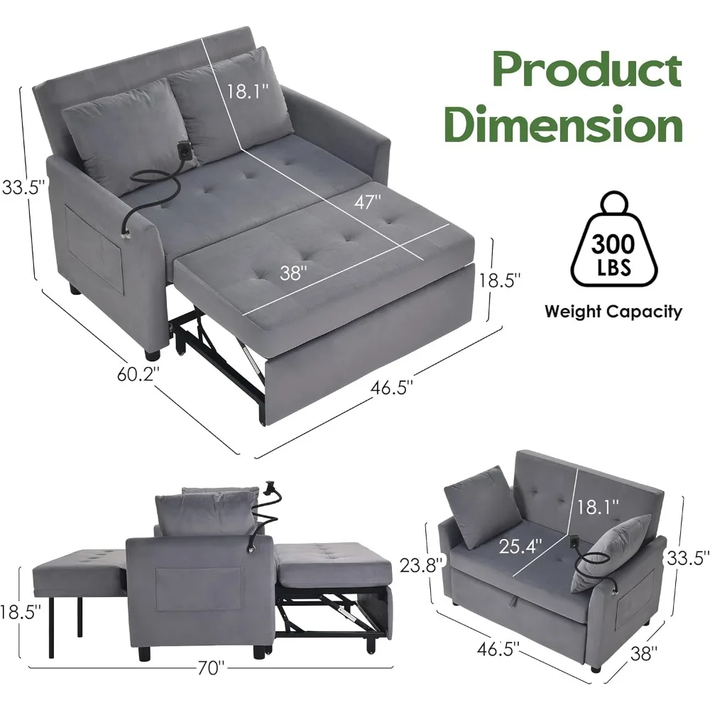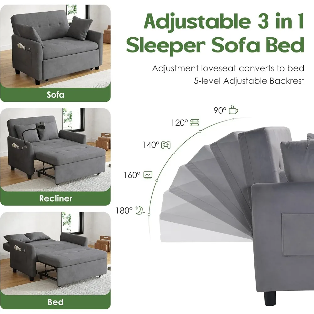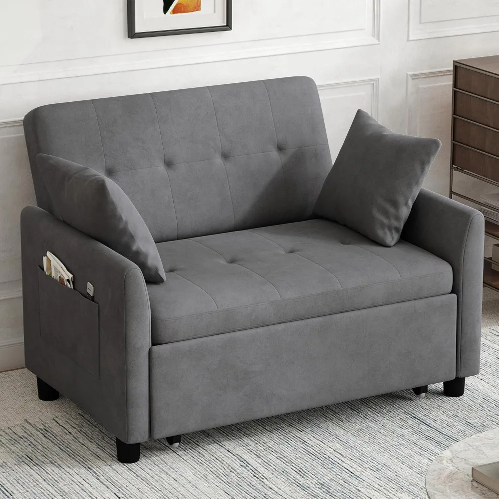 This 3-in-1 sleeper sofa bed is a versatile addition to any home, combining style and functionality. It easily converts from a loveseat to a full-size bed, making it perfect for guests or small spaces. The pull-out design ensures a smooth transition between sofa and bed configurations. Compact yet comfortable, it fits seamlessly in living rooms, apartments, or studios. High-quality materials provide durability and long-lasting support. The modern design complements a variety of interior décor styles. Ideal for daily use as a sofa, occasional seating, or sleeping solution. Easy to assemble and maintain, keeping your space tidy and functional. Lightweight yet sturdy, it offers both convenience and comfort. Combining practicality, style, and comfort, this sleeper sofa bed is perfect for maximizing space without sacrificing aesthetics.