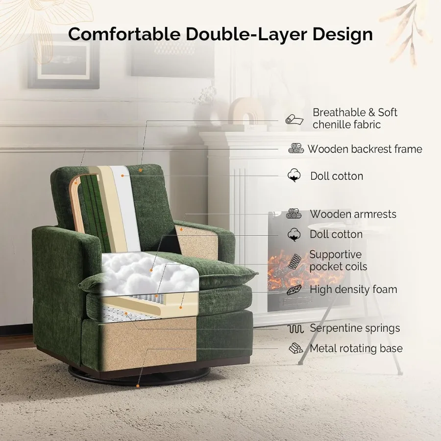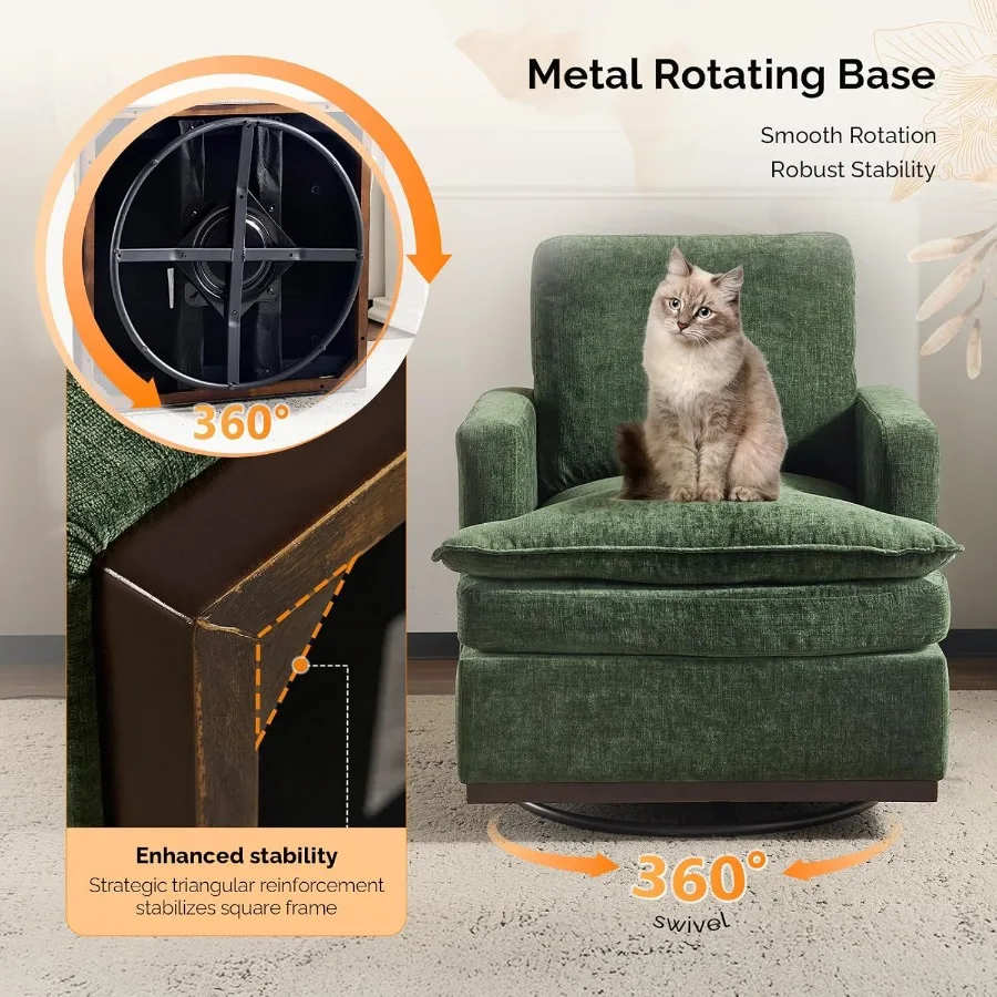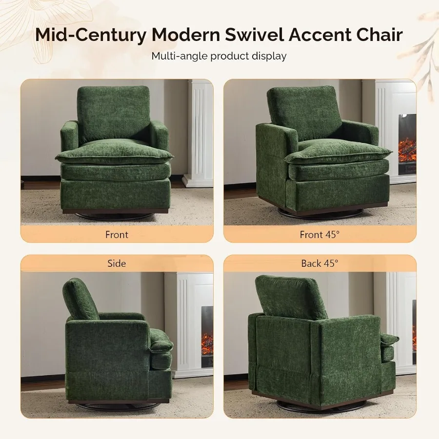 This 360° swivel mid-century modern accent armchair combines style, comfort, and functionality for any living space. Featuring double-layer seat cushions, it provides ultimate comfort for extended sitting. The swivel base allows smooth 360-degree rotation, perfect for socializing or relaxing. Designed with a mid-century modern aesthetic, it complements both contemporary and classic décor styles. Ideal for living rooms, bedrooms, or lounge areas, creating a cozy seating corner. Upholstered in soft, durable fabric for long-lasting comfort and elegance. Sturdy frame construction ensures stability and durability for daily use. Lightweight yet robust, making it easy to move and reposition. Perfect for reading, watching TV, or simply lounging in style. Combining ergonomic comfort and chic design, this accent armchair elevates the look and feel of any room.
