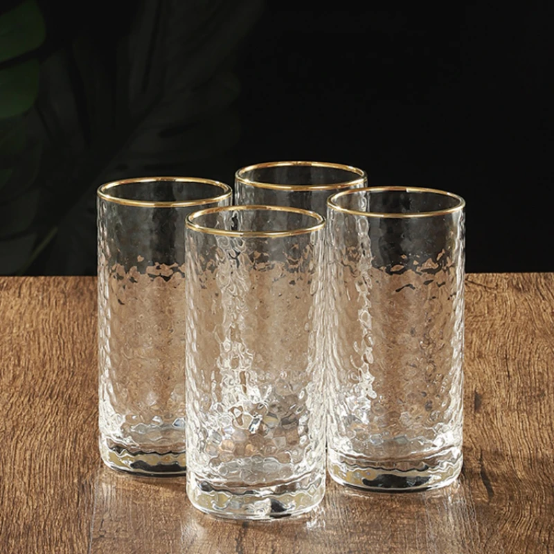 This 4-piece set of 11oz (320ml) gold-edged water cups combines elegance and practicality for everyday use. Crafted from heat-resistant glass, each cup is safe for hot and cold beverages, including tea, juice, milk, or soda. The luxurious gold rim adds a sophisticated touch to your table setting. Durable construction ensures long-lasting performance and resistance to chipping. Each cup is perfectly sized for individual servings while maintaining a comfortable grip. Ideal for home use, parties, or special occasions, enhancing your beverage presentation. Lightweight yet sturdy, making them easy to handle and pour from. The clear glass design allows you to showcase colorful drinks beautifully. Easy to clean and maintain, suitable for careful hand washing or gentle dishwasher use. Combining style, functionality, and durability, this set of gold-edged glasses elevates any dining or entertaining experience.