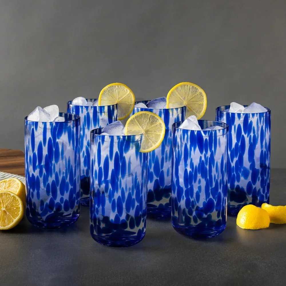 This 6-pack of 20oz tortoise blue drinking glasses combines style and functionality for everyday use or special occasions. Each glass features a unique tortoise-inspired color, adding a vibrant and elegant touch to your table setting. Crafted from durable glass, these cups are built to last while maintaining clarity and shine. Perfect for serving water, juice, iced tea, cocktails, or any favorite beverage. The 20oz capacity provides generous servings for adults and children alike. Lightweight yet sturdy, they are easy to handle and comfortable to drink from. Ideal for home dining, parties, or outdoor gatherings. The stylish design complements modern, casual, or contemporary décor. Easy to clean and maintain, suitable for hand washing or dishwasher use. Combining durability, elegance, and practicality, this glass set enhances any dining or entertaining experience.