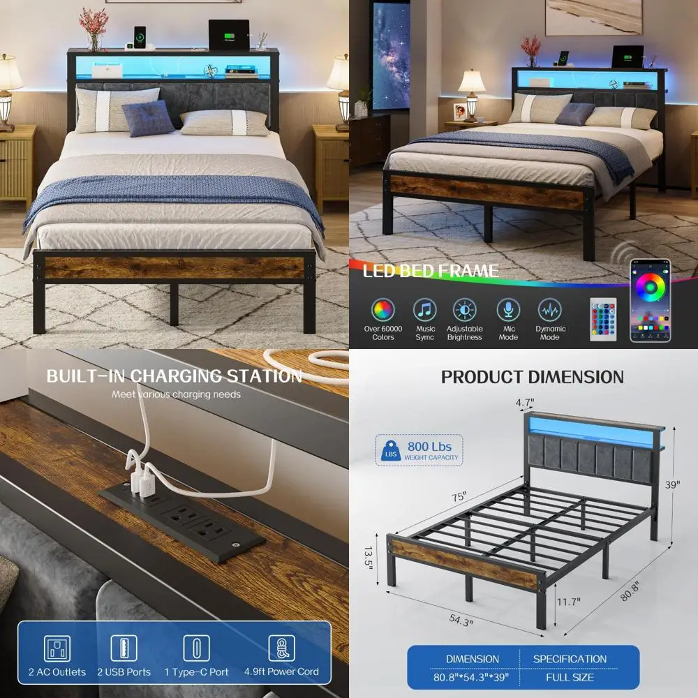 This full-size floating platform bed combines sleek modern design with practical functionality. Integrated LED lights provide ambient lighting, creating a cozy and stylish bedroom atmosphere. The built-in charging station allows you to conveniently charge phones, tablets, or other devices. A powered screwdriver is included to simplify and speed up the assembly process. Sturdy construction ensures durability and long-lasting support for any mattress. The floating design creates the illusion of more space while enhancing your room’s aesthetic appeal. Compatible with most standard mattresses, it delivers comfort and versatility. Minimalist styling complements modern, contemporary, or industrial bedroom décor. Perfect for apartments, guest rooms, or master bedrooms, it combines style with functionality. This platform bed offers an innovative, tech-savvy solution for modern living spaces.
