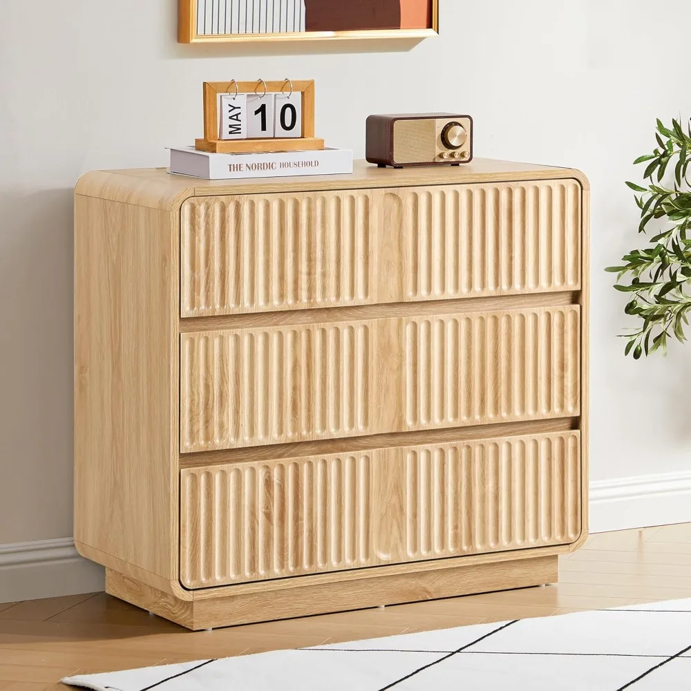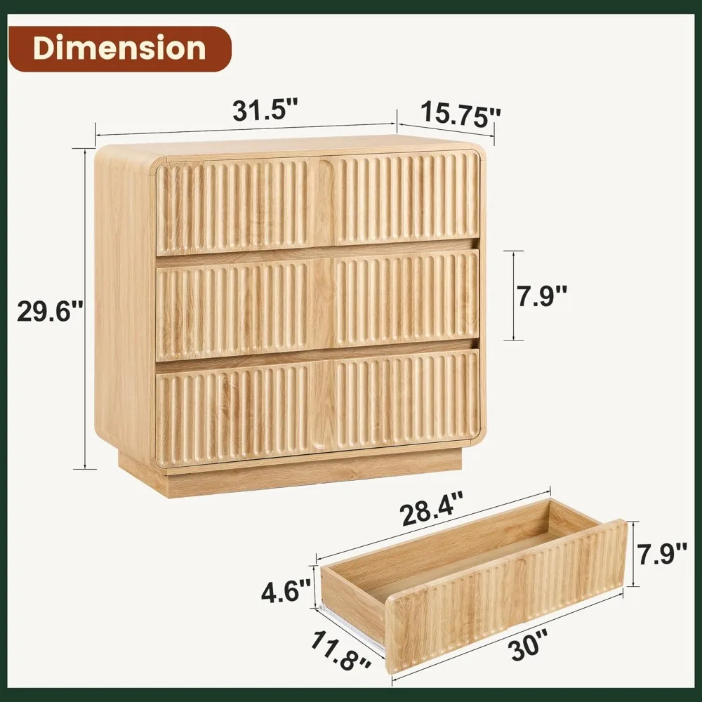 This fluted 3-drawer dresser is a stylish and functional addition to any bedroom. Measuring 31.5 inches, it offers ample storage space for clothing, accessories, or personal items. The fluted design adds texture and visual interest, creating a sophisticated look. Crafted from durable materials, it ensures long-lasting stability and strength. Perfect for small spaces or larger bedrooms, it blends seamlessly with a variety of décor styles. Smooth drawer slides provide effortless access to stored items. The compact yet spacious design makes organization easy and convenient. Lightweight construction allows easy repositioning while maintaining sturdiness. Ideal for bedrooms, guest rooms, or home offices, it provides both functionality and elegance. Combining modern design, durability, and practicality, this dresser enhances the aesthetic and organization of any room.