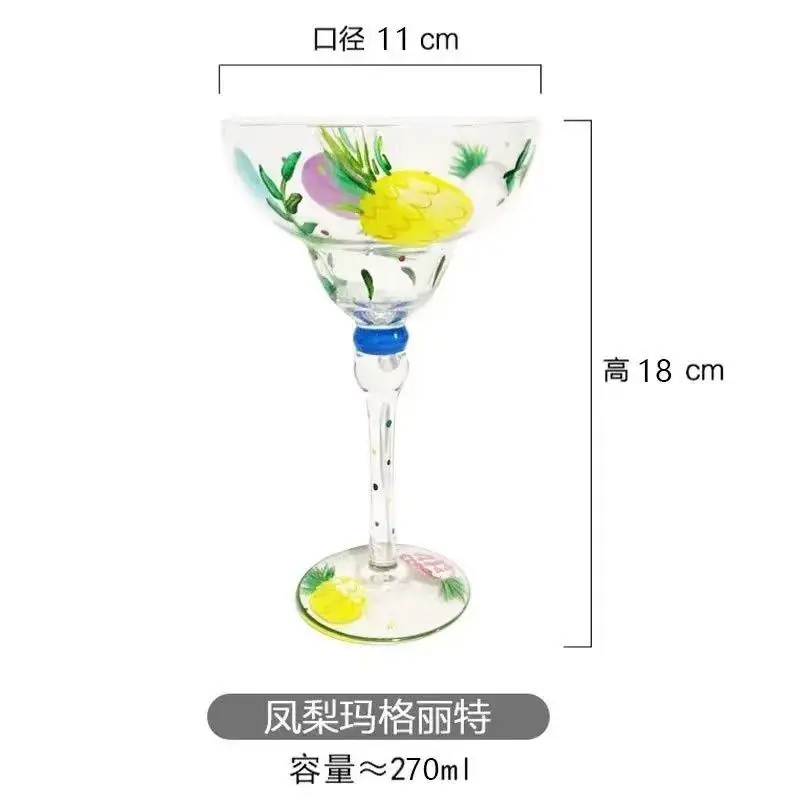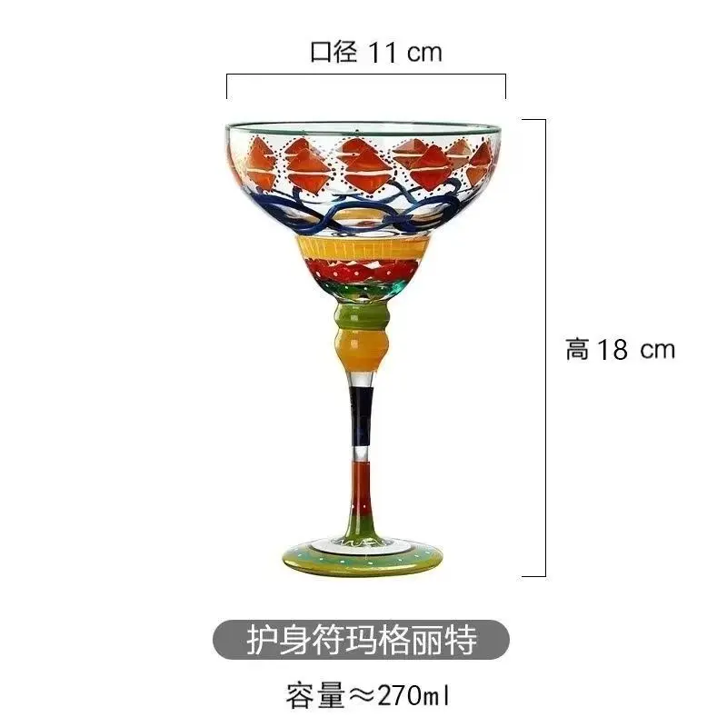 These hand-painted margarita cocktail glasses bring a creative and colorful touch to any home bar or party. Crafted from high-quality crystal, each glass combines durability with elegance. The vibrant hand-painted design makes every glass unique and visually appealing. Ideal for serving margaritas, highballs, cocktails, or other favorite beverages. Perfect for parties, celebrations, or casual entertaining, enhancing the drink presentation. The crystal construction ensures a clear, sparkling finish that showcases the drink beautifully. Ergonomically designed for comfortable handling and sipping. Lightweight yet sturdy, providing both functionality and style. Easy to clean with careful hand washing to preserve the painted details. Combining artistry, elegance, and practicality, these margarita glasses elevate any drinking experience.