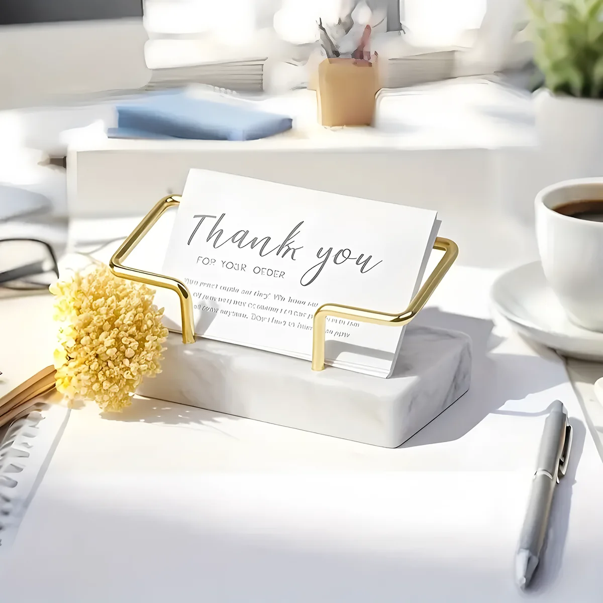This creative marble business card holder combines elegance and functionality for home or office use. Crafted from durable metal with a marble finish, it adds a sophisticated touch to any workspace. The vertical design keeps cards organized, visible, and easily accessible. Perfect for storing business cards, appointment cards, or small notes. Its high-end appearance makes it suitable for executive desks, reception areas, or home offices. Lightweight yet sturdy, it ensures stability without taking up excessive desk space. The sleek design complements modern, minimalist, or luxury office décor styles. Easy to use and maintain, keeping your workspace tidy and professional. Ideal as a stylish gift for colleagues, clients, or business partners. Combining aesthetics, practicality, and durability, this marble card holder is an essential accessory for organized and elegant workspaces.