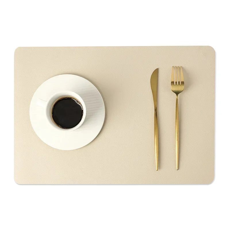 This Nordic solid double-sided leather dining mat combines elegance with practicality for any dining setting. Crafted with high-quality leather, it offers durability and a sophisticated look. The double-sided design allows versatile use while maintaining a sleek appearance. Heat insulation protects your table from hot dishes and cookware. Waterproof and oil-proof surfaces make cleaning spills effortless. Its rectangular shape fits perfectly on dining tables, kitchen counters, or banquet settings. Ideal for home, restaurants, or hotel use, adding both style and protection. Lightweight and flexible, it is easy to reposition or store. The modern Nordic design complements a variety of décor styles, from contemporary to classic. Combining functionality, durability, and aesthetic appeal, this placemat enhances both the practicality and elegance of your dining space.