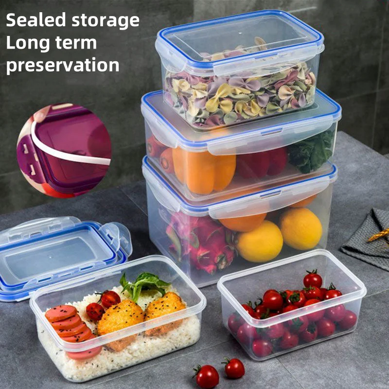This plastic food storage box is perfect for keeping meals fresh in the refrigerator or for taking lunches on the go. Its airtight lid ensures that food stays sealed, preventing leaks and preserving freshness. The rectangular design makes it easy to stack and organize in your fridge or pantry. Made from durable, food-safe plastic, it is suitable for storing a variety of foods. Microwave-safe construction allows you to heat meals directly in the container. The lightweight yet sturdy design makes it convenient for daily use at home, work, or school. Its simple, clear design helps you see contents at a glance. Easy-to-clean materials ensure hassle-free maintenance. Ideal for meal prep, leftovers, or packed lunches, it keeps food organized and secure. Combining practicality, durability, and versatility, this storage box is a must-have kitchen accessory.