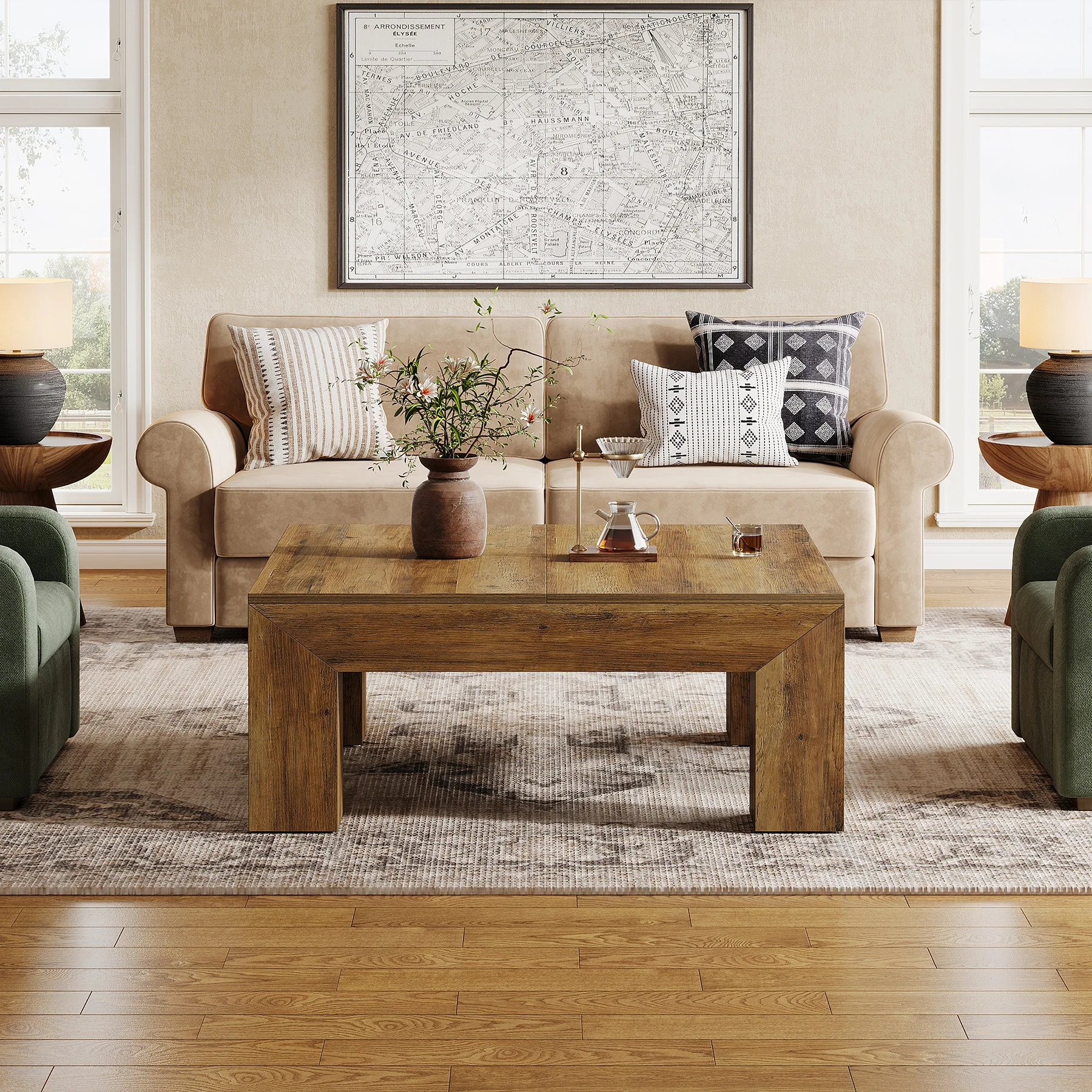 This Tribesigns square coffee table brings farmhouse charm and modern simplicity to your living room. Its 39.4-inch size offers ample surface space for drinks, books, décor, and everyday essentials. Crafted from durable all-MDF material, it provides strength and long-lasting performance. Sturdy wooden legs ensure excellent stability and reliable support. The clean lines and classic square shape blend easily with farmhouse, modern, or contemporary interiors. Smooth surfaces make cleaning and maintenance quick and effortless. Its versatile design works perfectly as a center or cocktail table in living rooms and lounges. The balanced height allows comfortable use from sofas or seating areas. Simple assembly makes setup fast and convenient. Combining durability, style, and practicality, this coffee table is a functional centerpiece for any home.