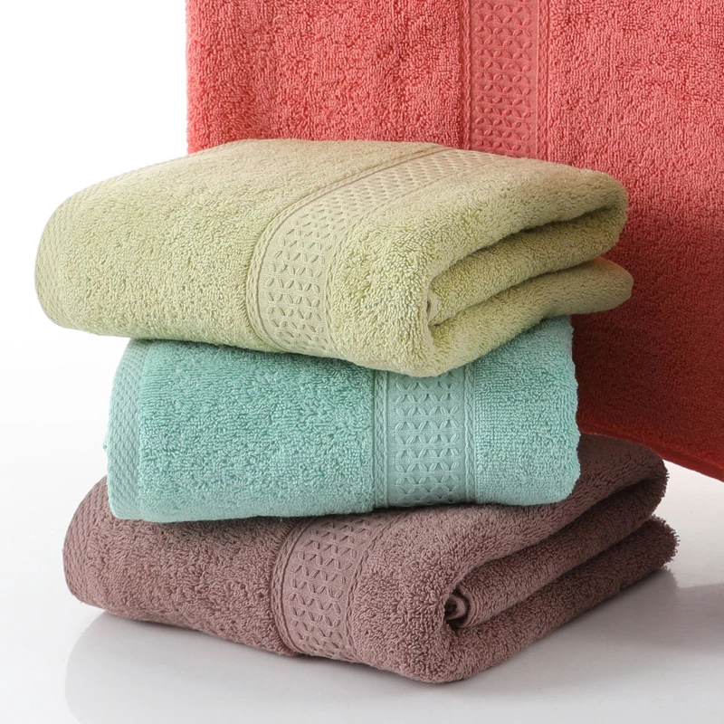 This thick cotton jacquard towel delivers a plush, hotel‑style feel that’s ideal for adults after a bath or shower. Made from 100% cotton, it’s naturally soft and highly absorbent, giving you a comfortable, quick‑drying experience. The jacquard construction adds subtle texture and strength by weaving patterns directly into the fabric rather than printing or embroidering, which is a hallmark of this textile method. Its dense weave and substantial weight make the towel feel more substantial and durable than thinner alternatives. The plain‑color design keeps it versatile for any bathroom décor, from modern to classic. Because cotton fibers breathe well, the towel stays fresher and more comfortable to use in warm or humid environments. The larger size gives full coverage, cozy wrapping, and better utility for adults than smaller bath towels. Its thick build also helps it retain warmth when you dry off or wrap up after a soak. Easy to pair with other solid linens, it works equally well in homes, guest bathrooms, or as a thoughtful, practical gift. Overall, this towel blends softness, absorbency, and a refined woven texture into one everyday luxury item.